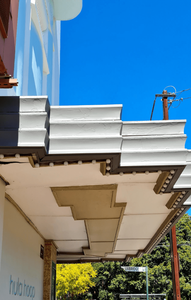 Project DescriptionThe Regal Theatre on Kensington Road, Kensington Park in the Eastern Suburbs is a 1925 era Art Deco style building operating as a single screen cinema. Through years of neglect and truck damage due to the veandah being close to the road the awning and fascia were in disrepair. Adelaide Pressed Metal worked in conjunction with builder Mykra to repair the damage to the original awning and fascia. The scope of works included checking the substructure & framing timbers, stripping the fascia and repair and replace like for like to keep the original 1925 heritage fabric of the building. A new die was required for the metal fascia panel and bespoke roof flashings and barge cap were folded to original specifications.15% of the timber framing was replaced40% new pressed metal fascia panel replaced40% metal fascia repaired20% untouchedRoofing & painting by others