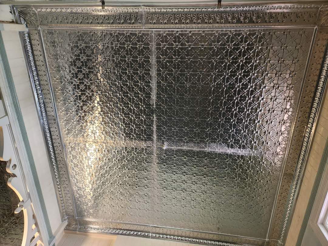 Project DescriptionPressed metal ceiling restoration and installation in a grand heritage home in the suburb of Yeronga. As is custom for the era a different design was installed in each room. Hallway design - Queen of Hearts. Dining Room Design - Fleur. Lounge Design- Acanthus. Cornices - Commonwealth Cornice & Regal Cornice