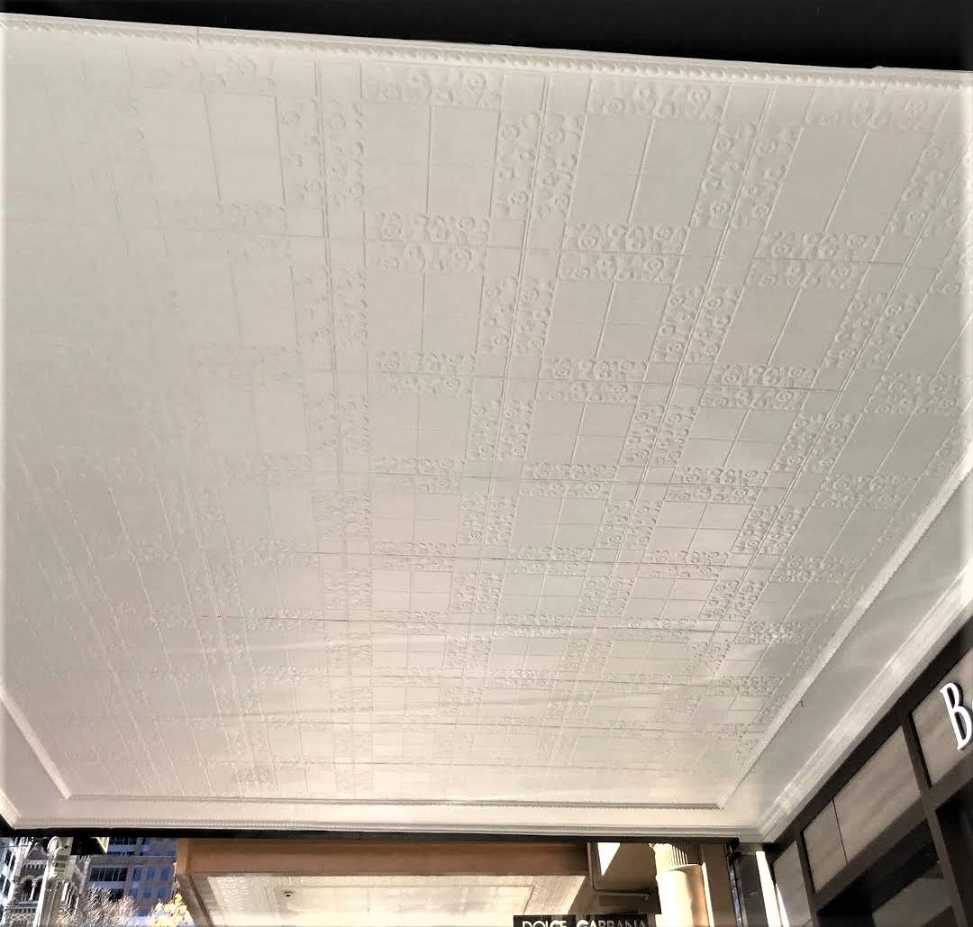Project DescriptionThe original pressed metal verandah ceiling on Collins Street was in disrepair and in need of restoration. Melbourne Pressed Metal repaired and replaced like for like restoring the ceiling to its original Art Deco elegance. The main design used is Clarence with a Fine Roughcast border completed with the Egg & Lace coverstrap. Another piece of Melbournes' heritage restored.