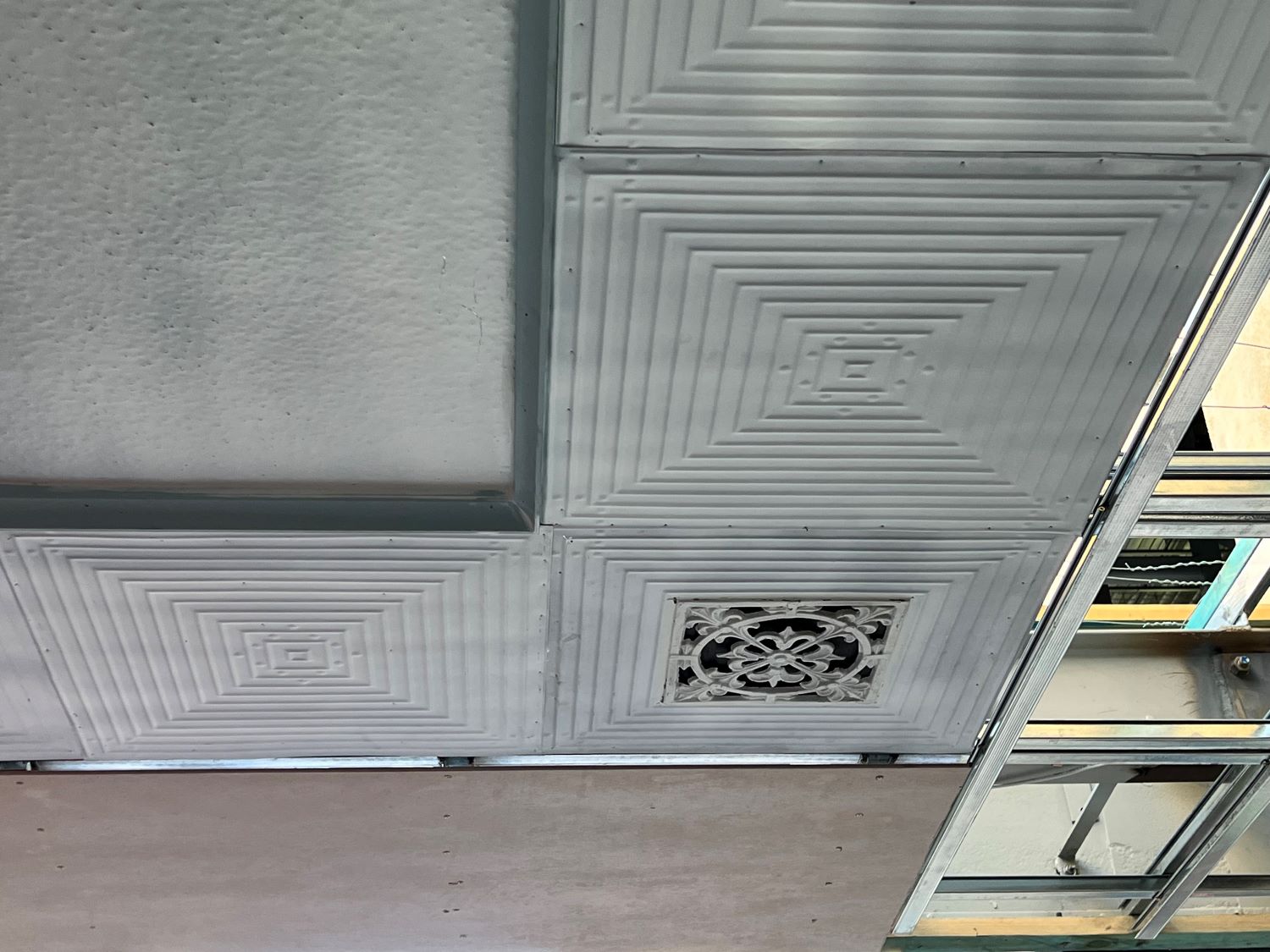 Repair & restore original pressed metal verandah ceiling & metal cantilever verandah awning to original condition