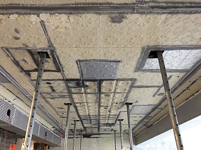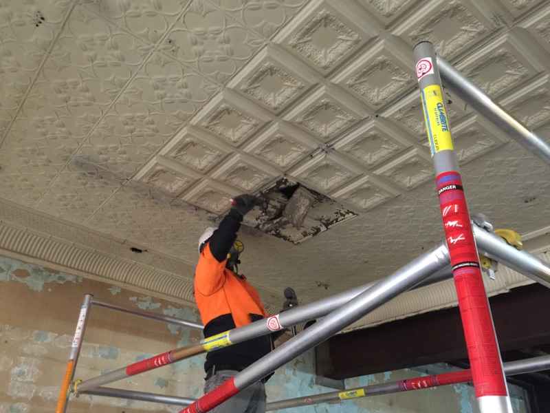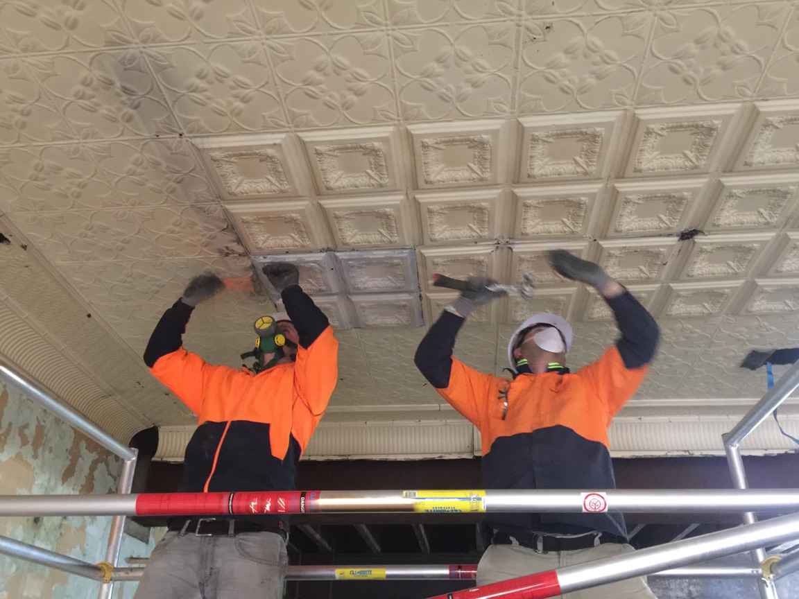 Scope of Contracting WorksRestoration, removal and reinstallation of original pressed metal panels over multiple floors. Installation of new pressed metal panels like for like and creation of York Street Panels to recreate original ceiling rose. Preservation of original historic features as per Heritage Architect instructions.