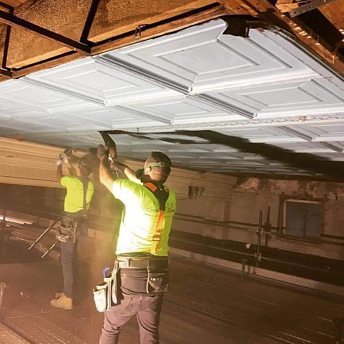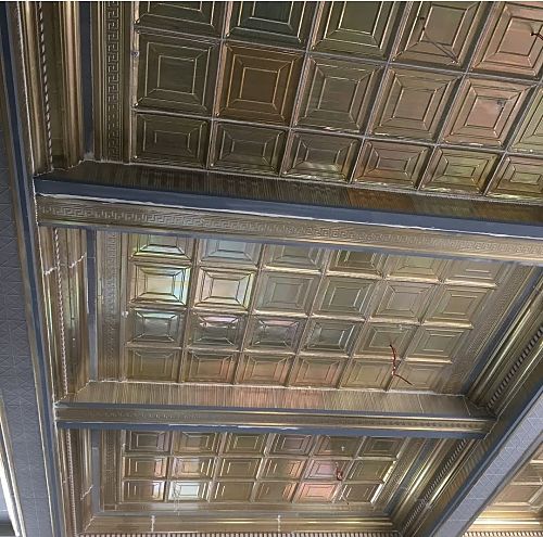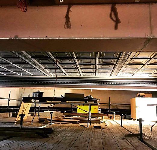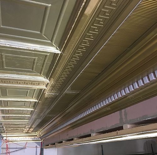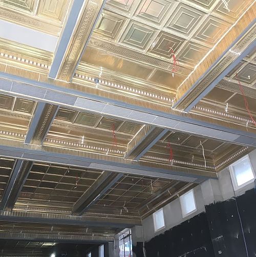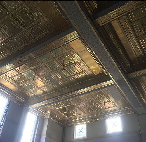Scope of Contracting WorksRestoration, new Die manufacture and installation of pressed metal ceiling panels, cornice, beams and battens to match intricate designs of the heritage listed building