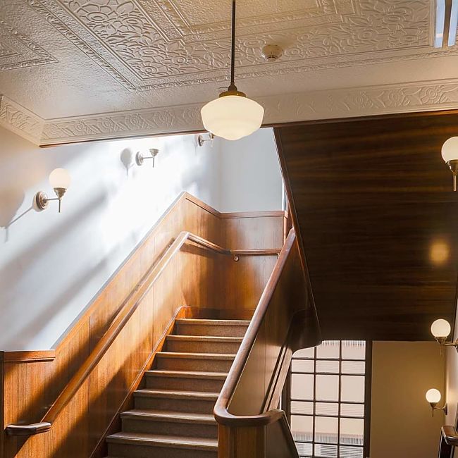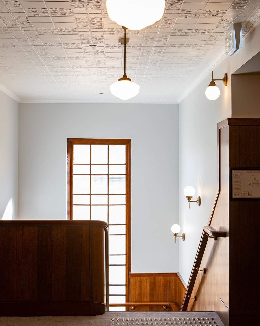 Project DescriptionThe Sydney Pressed Metal Team travelled to Northern NSW to work on the re-installation of pressed metal ceilings to the heritage listed Tattersalls Hotel Armidale. The historic building was remodelled in the 1930's in the Art Deco style with pressed metal ceilings installed using Art Deco inspired designs. Sydney Pressed Metal restored mutiple rooms to their former glory including The Chancellors Room, design used was New Deco, The Governors Room with designs Clarence, Carence Border and Clarence Corner used. In the foyer the design New Deco was used on the ceiling and in the stairwell a combination of Clarence, Clarence Border, Clarence Corner and Roughcast Tile were used. Several new dies were produced to complete this project including Clarence Border and Clarence Corner to compliment the Clarence panel and Roughcast Tile which was used as a border panel.
