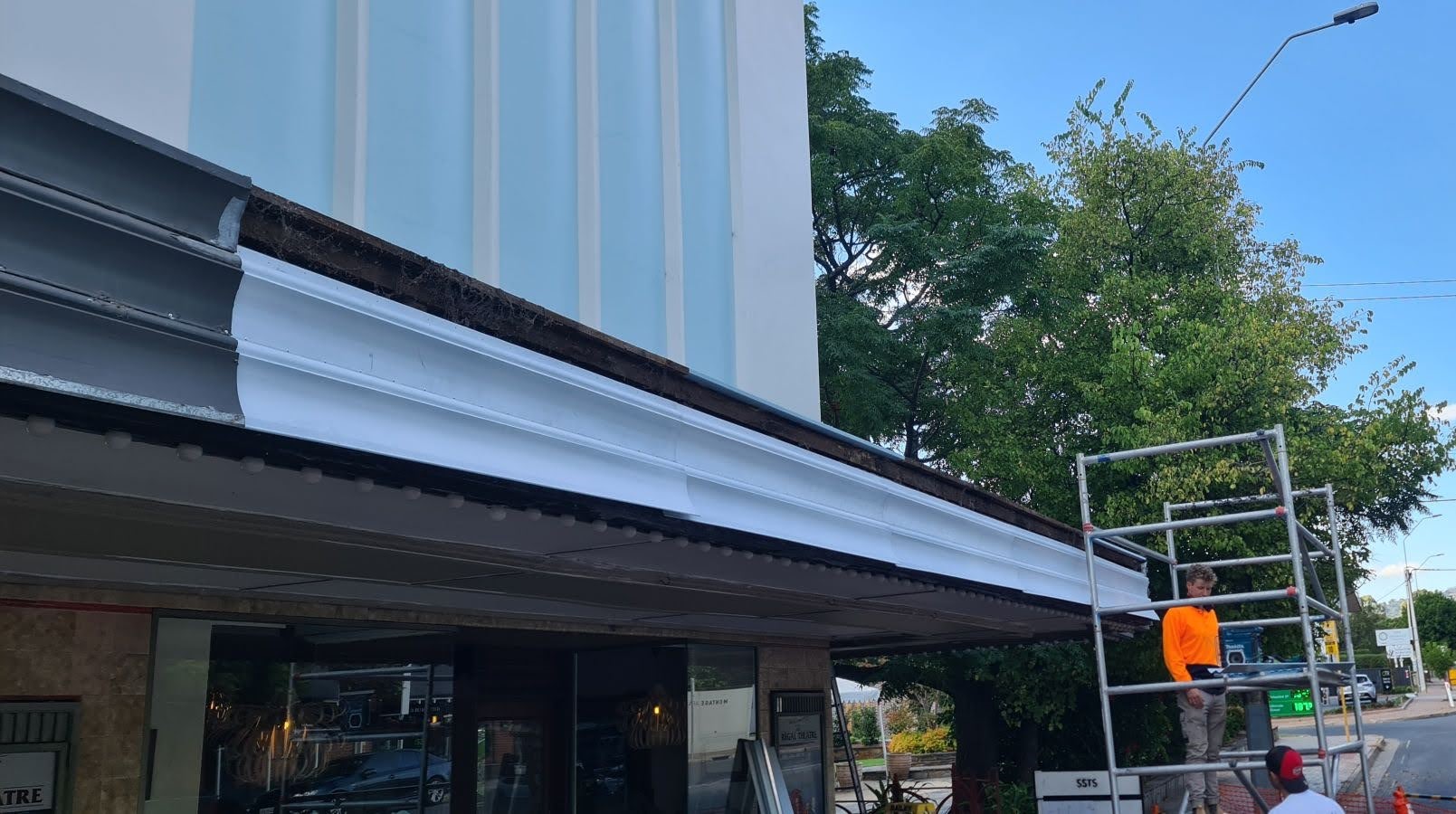 Project DescriptionThe Regal Theatre on Kensington Road, Kensington Park in the Eastern Suburbs is a 1925 era Art Deco style building operating as a single screen cinema. Through years of neglect and truck damage due to the veandah being close to the road the awning and fascia were in disrepair. Adelaide Pressed Metal worked in conjunction with builder Mykra to repair the damage to the original awning and fascia. The scope of works included checking the substructure & framing timbers, stripping the fascia and repair and replace like for like to keep the original 1925 heritage fabric of the building. A new die was required for the metal fascia panel and bespoke roof flashings and barge cap were folded to original specifications.15% of the timber framing was replaced40% new pressed metal fascia panel replaced40% metal fascia repaired20% untouchedRoofing & painting by others
