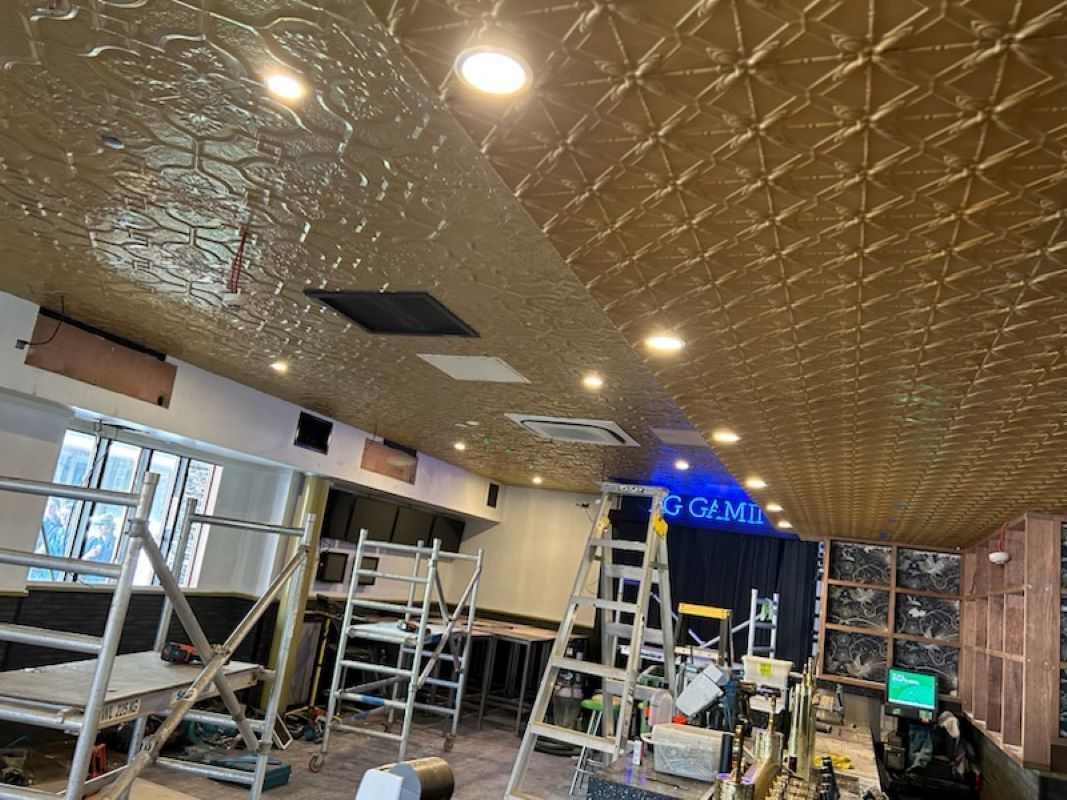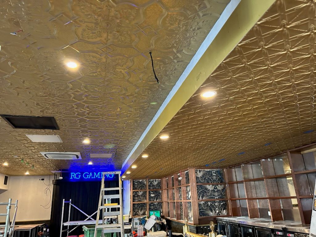 Project DescriptionWelcome to the new Royal George Hotel transformation. The Royal George Hotel is located on the corner of Ann & Brunswick Streets, Fortitude Valley, Brisbane. The original building dates back as far as 1850 with major additions & renovations in 1886 & 1924 transforming it into a grand late Victorian style building. Unfortunately in the 1960's much of the Victorian style decoration was stripped out & Brisbane Pressed Metal are proud to be a part of restoring some of the original grandeur this beautiful Heritage Listed Hotel deserves. Brisbane Pressed Metal have supplied & installed all pressed metal panels in Newington design, Lattice design & Carlton design to the main bar area & gaming room creating stunning decorative feature ceilings worthy of such a special building.