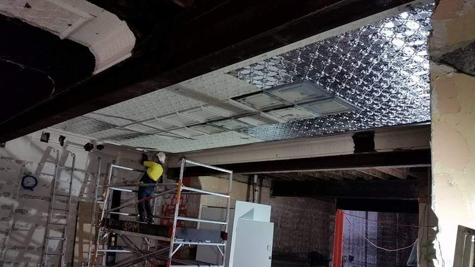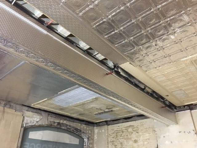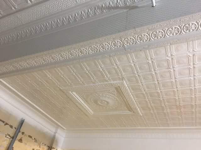 Scope of Contracting WorksRestoration, removal and reinstallation of original pressed metal panels over multiple floors. Installation of new pressed metal panels like for like and creation of York Street Panels to recreate original ceiling rose. Preservation of original historic features as per Heritage Architect instructions.